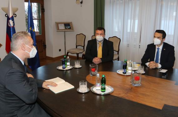 Mr. Valery Kavaleuski, Representative on Foreign Affairs of the exiled leader of the Belarusian opposition, Svetlana Tikhanovskaya, paid a visit to Slovenia between March 18 and 19, 2021. In Bled, Mr. Kavaleuski was welcomed by the Deputy Prime Minister and Minister of Defence, Matej Tonin. Minister Tonin put an accent on the support for democracy and rule of law in Belarus. During his stay in Ljubljana, he met with the Minister of Foreign Affairs, Anže Logar, PhD, who reaffirmed strong Slovenian and European support for strengthening democratic foundations in Belarus. MEP Milan Zver, PhD, and the President of the 'Dr. Jože Pučnik Institute', Andreja Valič Zver, PhD, emphasized a needed commitment to respect human rights and to strengthen civil society. Additionally, Mr. Kavaleuski talked about the current political and social situation in Belarus with several Slovenian media representatives.