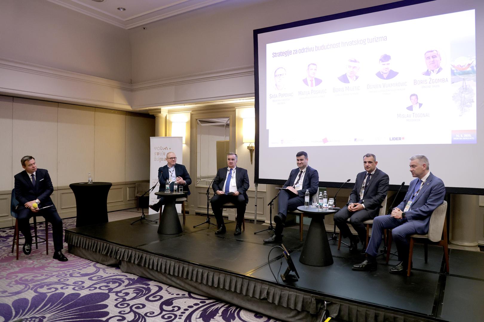 Saša Popovac, Kroatische Zentrale für Tourismus (HTZ); Damir Krešić, Direktor des Instituts für Tourismus; Boris Miletić, Gespan (Landrat) der Gespanschaft (Landkreis) Istrien; Matija Posavec, Gespan (Landrat) der Gespanschaft (Landkreis) Međimurje; Marko Jelić, Gespan (Landrat) der Gespanschaft (Landkreis) Šibenik-Knin und Moderator: Mislav Togonal, HRT (Kroatische Rundfunk und Fernsehen)