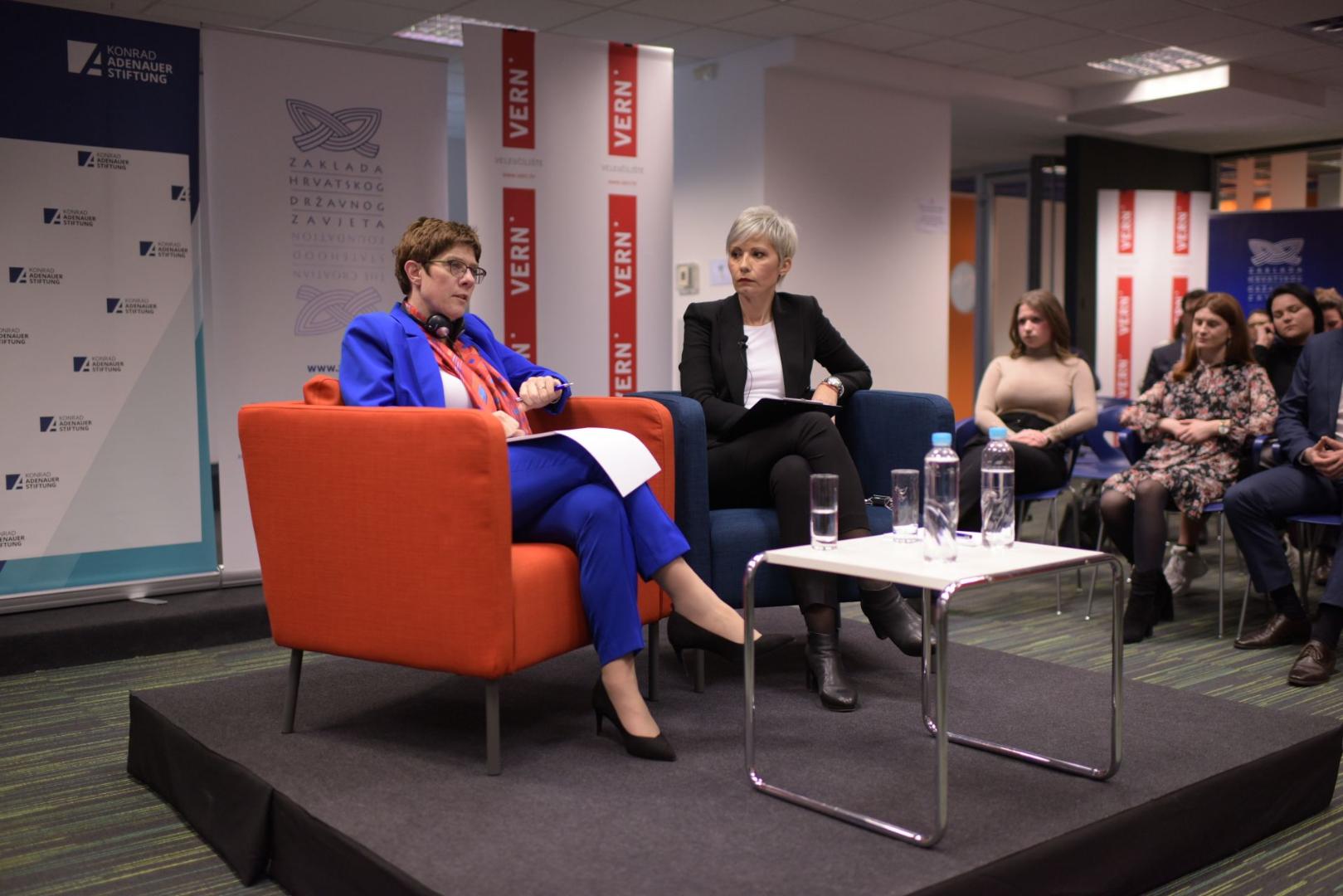 We learned lessons from the past: Migration policy must be shaped at the EU level – emphasized Annegret Kramp-Karrenbauer, the German Minister of Defence and Chairwoman of the Christian Democratic Union (CDU) on Thursday, March 5th, 2020 during a discussion in Zagreb organized by the Office of the Konrad-Adenauer-Stiftung for Croatia and Slovenia.