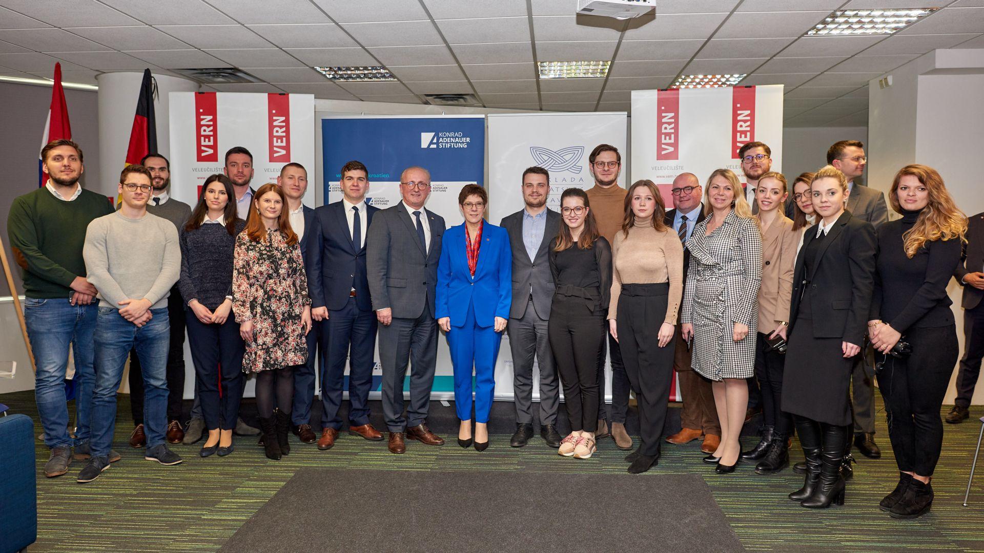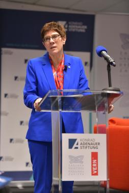 Migration, negative demographische Trends und Epidemien seien nur einige der zahlreichen nicht-konventionellen Sicherheitsbedrohungen für die EU und ihre Mitgliedsstaaten, sagte die Bundesministerin der Verteidigung und Bundesvorsitzende der CDU, Annegret Kramp-Karrenbauer am 5. März bei einer Veranstaltung der Konrad-Adenauer-Stiftung an der Universität VERN in Zagreb vor Studierenden. Kramp-Karrenbauer stellte sich im Anschluss an den informellen Rat der EU-Verteidigungsminister im Rahmen der kroatischen Ratspräsidentschaft bei einem Town Hall den interessierten Fragen junger Kroatinnen und Kroaten.