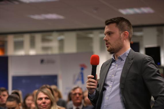 Nach ihrem inhaltlichen Input stellte sich Kramp-Karrenbauer den Fragen der anwesenden jungen Kroatinnen und Kroaten. Die Studierenden und Jugendlichen interessierte u.a. ob Europa eine neue Migrationskrise drohe, wie die Zusammenarbeit einer möglichen gemeinsamen europäischen Armee und der NATO aussehen werde, wie die Grenzkompetenz der europäischen Armee sein werde und ob sich die Themen erneuerbare Energien und eine saubere Umwelt zu strategischen Sicherheitsfragen entwickeln könnten.