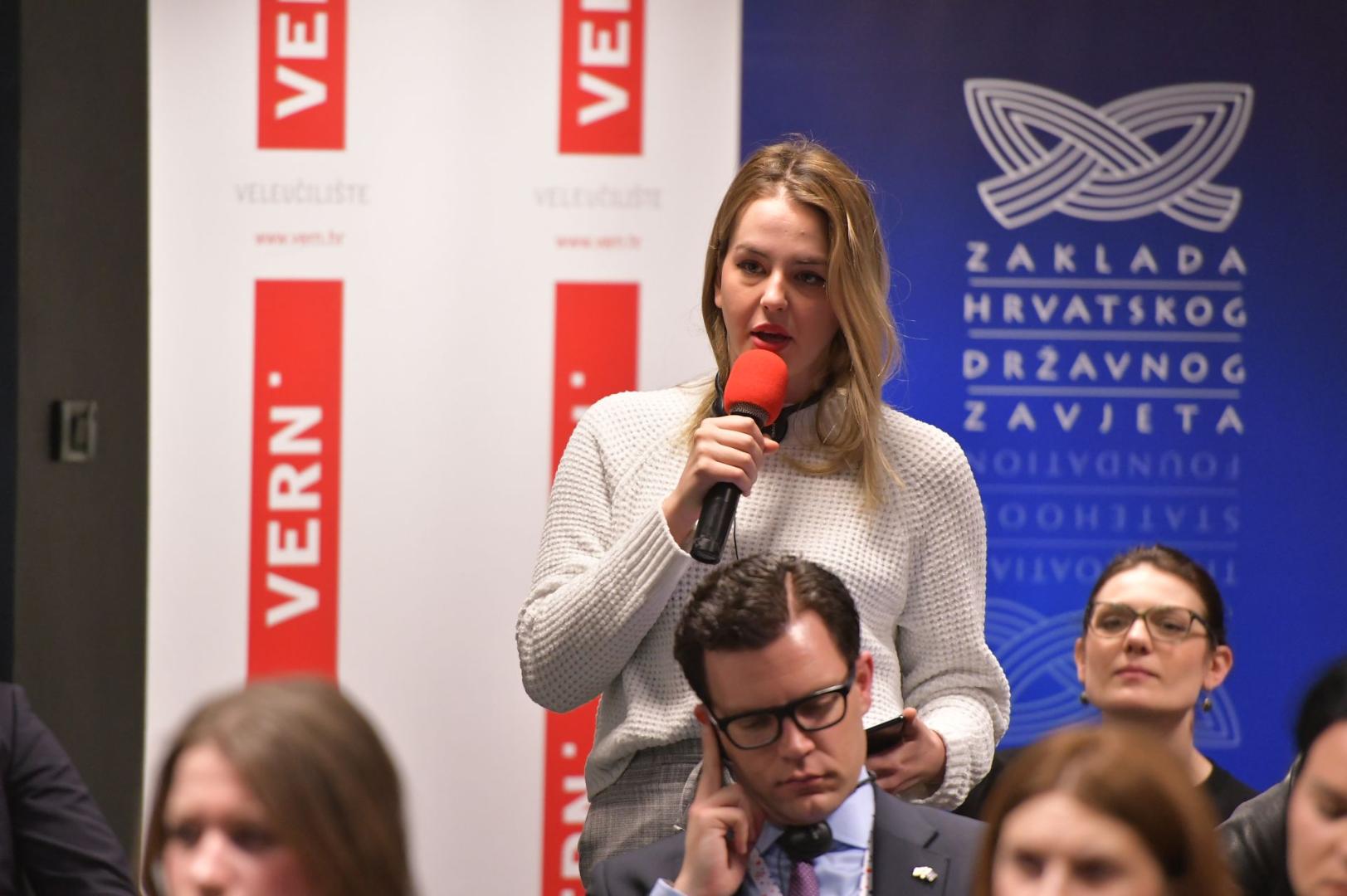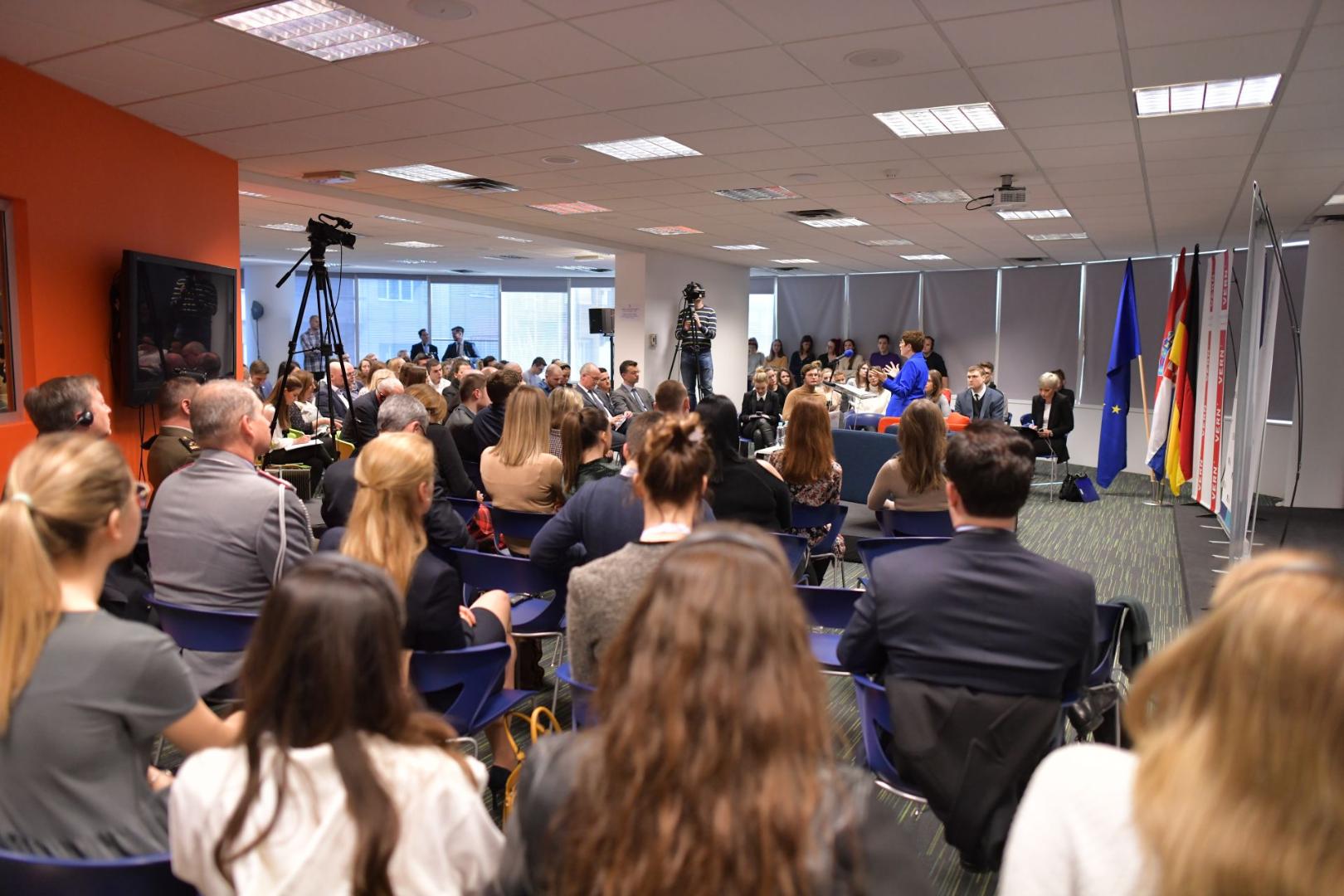 In einem bis zum letzten Platz ausgefüllten Saal an der Universität VERN betonte die Bundesministerin bei der Eröffnung der Veranstaltung, dass sie sich in Kroatien wie bei alten Freunden fühle. Sie zeigte sich sehr erfreut darüber, dass sie mit einer Generation diskutieren könne, die in den kommenden Jahren noch stärker Verantwortung übernehmen und die Zukunft Europas mittbestimmen werde.