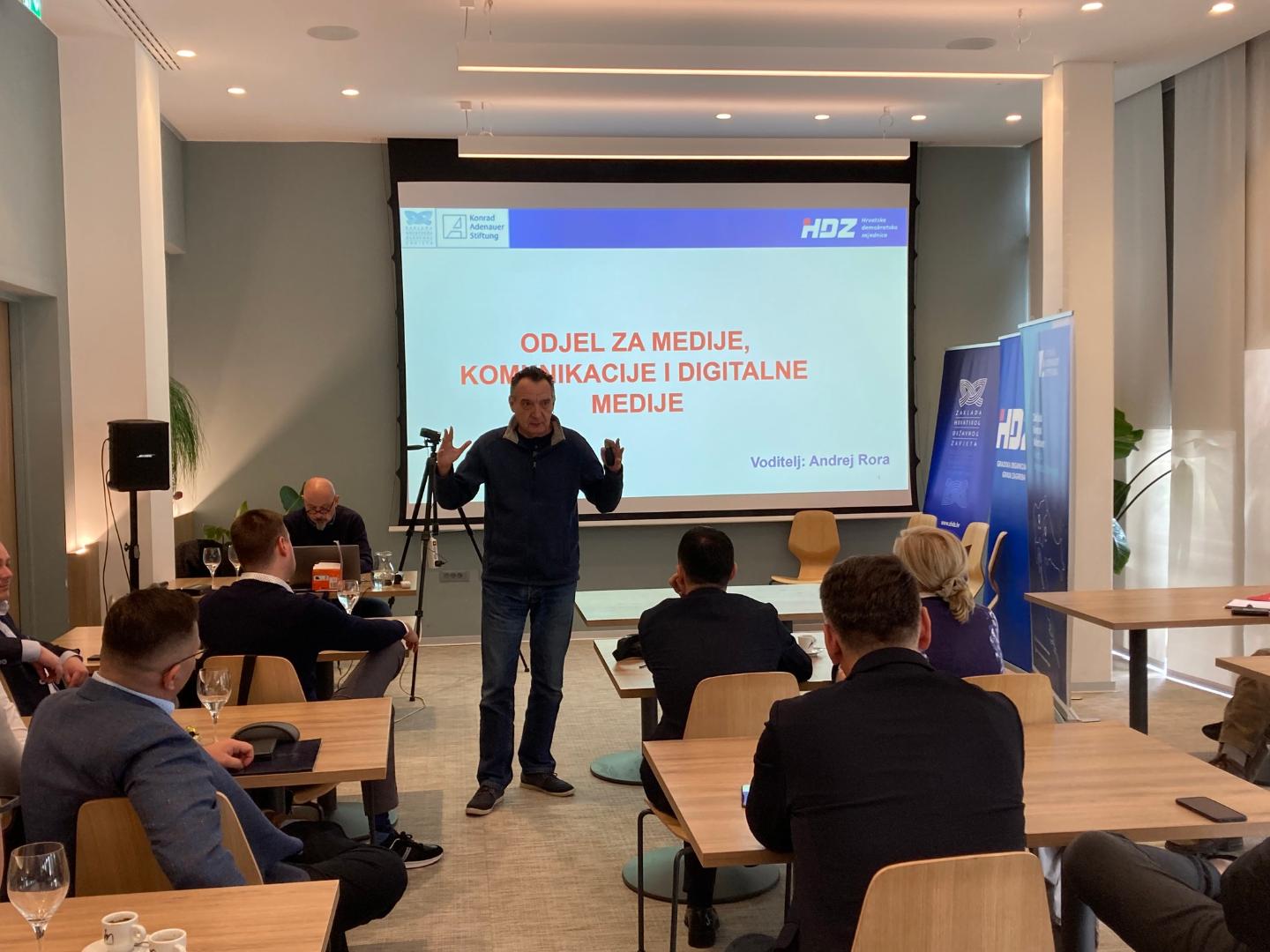 In cooperation with the Croatian Statehood Foundation (ZHDZ) the Konrad Adenauer Foundation organized the 1st workshop of the series: "Political Analysis and Communication" for the Board of the HDZ Zagreb in Rovinj from March 24th to 26th, 2023. During the workshop, the participants discussed with the president of HDZ Zagreb, Mislav Herman, the president of the HDZ of the county of Istria and member of the Croatian Parliament, Anton Kliman and communication experts the strategies of political communication, the importance of crisis communication as well as about the forms of public appearance in election campaigns.