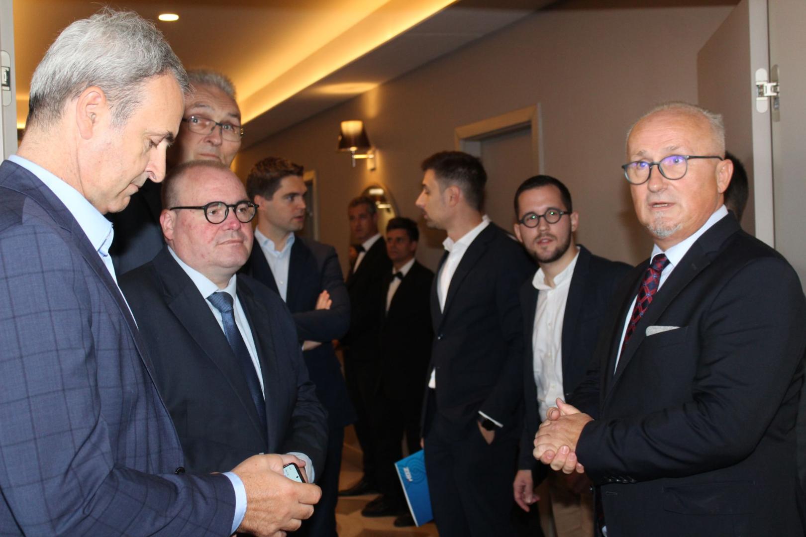Krunoslav Katačić, Generalsekretär der HDZ; Holger Haibach, Leiter des KAS-Auslandsbüros für Kroatien und Slowenien; Harald Seibel, Leiter des Wirtschaftsreferats und Ständiger Vertreter des deutschen Botschafters; MdEP Karlo Ressler (EVP/HDZ), Maksimilijan Šimrak, Vorsitzender der HDZ-Jugendorganisation und Srećko Prusina, Vorstandsvorsitzender der HDZ-Stiftung (ZHDZ)