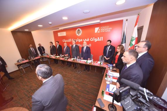 The workshop was moderated by the business news producer and presenter, financial analyst and economic media expert Mr. Maurice Matta and was opened by the Lebanese National anthem followed by the opening remarks of the minister of labor, Mr. Kamil Abou Sleiman and the resident representative of the Konrad Adenauer Foundation to Lebanon, Dr. Malte Gaier.