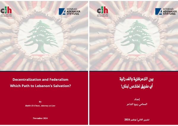 Lebanon has navigated one of the most challenging periods in its recent history, facing deep-seated political, economic, and social issues that threatened its stability and future. Over the past two years, the KAS/CIH collaboration produced a series of papers and policy briefs that addressed these critical challenges. These documents provided a comprehensive analysis of Lebanon's systemic problems and proposed actionable solutions to guide the country toward a more stable and prosperous future. The topics explored included the necessity of political reforms, the restoration of state sovereignty, the imperative of good governance, and socioeconomic stability.