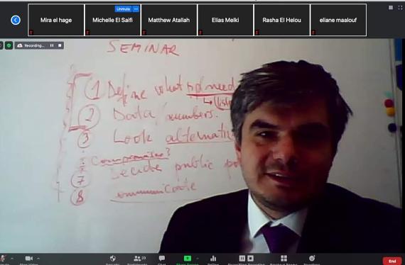 On the first day, the director of Robert Schuman Institute, Mr. Gábor Berczeli and the Resident Representative of Konrad-Adenauer-Stiftung in Lebanon Dr. Malte Gaier gave the welcome speeches. After which Mr. Razvan Orasanu, held the introductory session on “Elements of public policy – how to analyse and implement local public policy”.