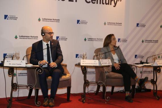 The first panel,“Foreign Policy of Lebanon: Diplomacy of Positive Neutrality”, revolved around the positive impact of sovereignty, independence, neutrality as a foreign policy tool for conflict prevention and –resolution. Necessary circumstances and prerequisites for a neutral policy were debated, as well as the obstacles Lebanon is currently facing. The Swiss Ambassador to Lebanon, Mrs. Monika Schmutz Kirgoz, presented the model of Switzerland as a neutral country as an example with comparative value.