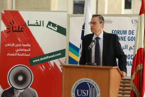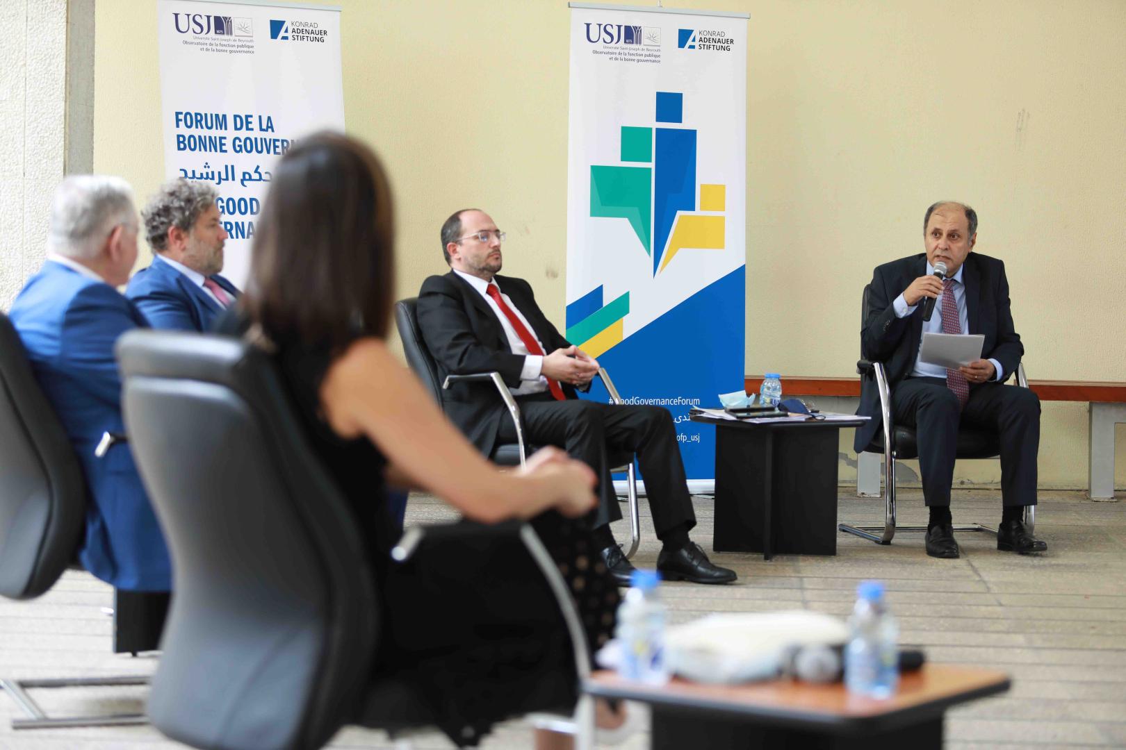 Within the framework of achieving good governance, strengthening governance and combating corruption in the public and private sectors, the “Observatory of Public Function and Good Governance” at Saint Joseph University, in cooperation with the Konrad-Adenauer-Stiftung (KAS), organized a virtual seminar entitled “Fighting Corruption: What Prevents the Application of Laws”, on Friday, May 21, 2021, at the campus of the Faculty of Social Sciences on Huvelin Street.