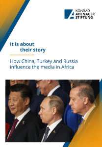 KAS Media Africa has asked experts on Chinese, Turkish and Russian media policies to outline the strategies that the state and media institutions are applying when dealing with media houses and media practitioners in Africa. As media experts in South Africa, the DRC or Nigeria are witnessing a growing pressure on their ways of investigating and positioning media in their countries as the Fourth Estate, this publication tries to give an overview, a handbook for orientation.