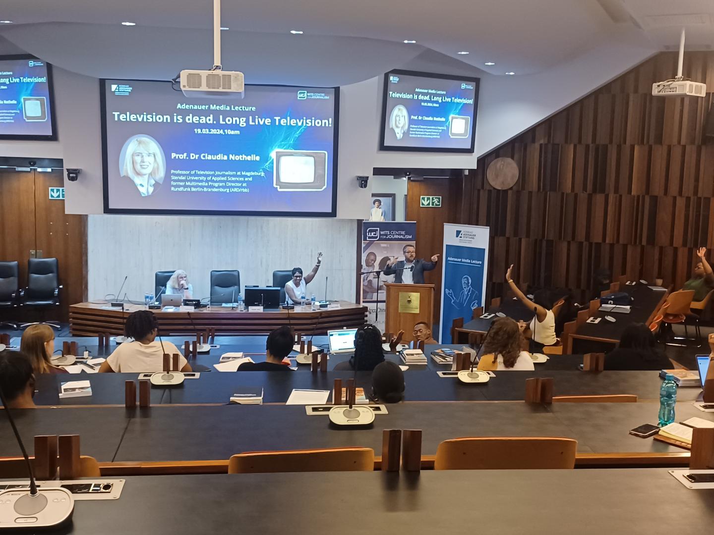 The topic of the first lecture was “Television is dead - long live television!” held by Prof. Dr. Claudia Nothelle, Professor of Television Journalism at the University of Applied Sciences Magdeburg-Stendal and former Programme Director of Rundfunk Berlin-Brandenburg (ARD/rbb). The event, organized in the glamorous Senate Room at the University of the Witwatersrand in Johannesburg, brought together students, academics, and media experts to explore the evolving landscape of television journalism in the digital age.