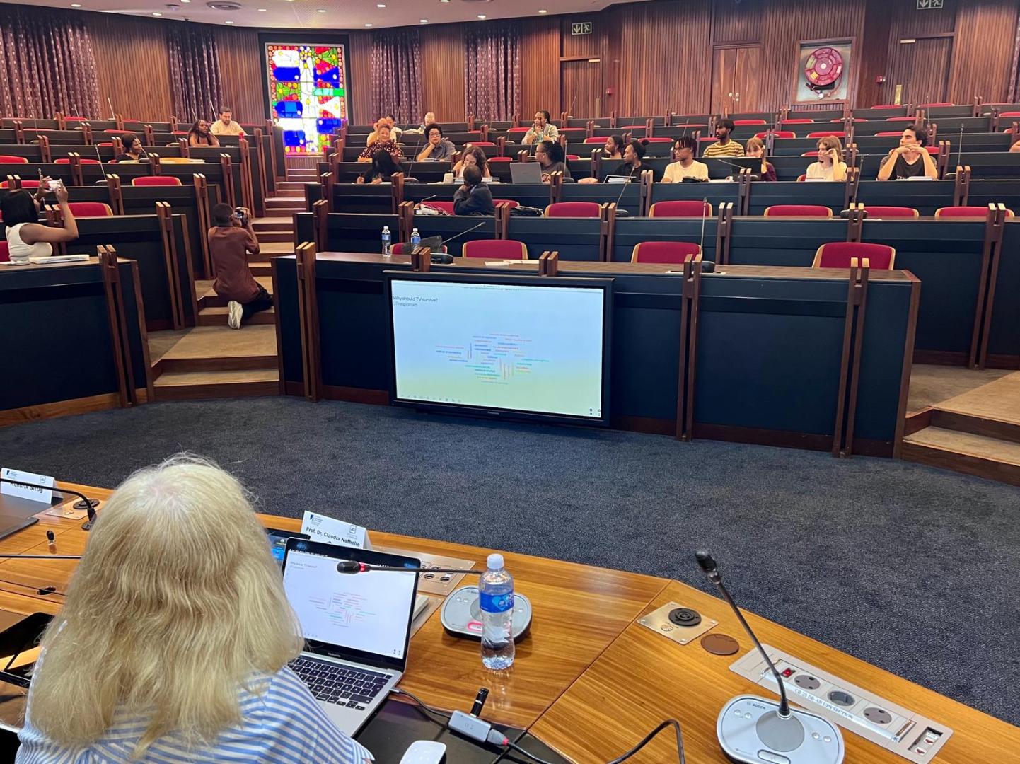 During her lecture, Prof. Nothelle posed thought-provoking questions such as "Why should TV survive?" and explored the rise of non-linear TV platforms in response to changing viewer habits and technological advancements. The audience actively engaged in the discussion, sharing their perspectives and insights on the future of television.