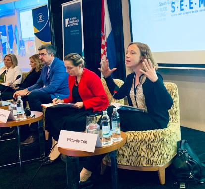 Traditionally a discussion on media and politics in the host country, moderated by Oliver Vujović, followed. The public broadcaster HRT was also here a central subject of the discussion. “The current government does not like journalists, we only bother them. But we have to fight for our own freedom,” said Ilko Ćimić from the online platform Index.hr. „We expect from the government not to bribe us, not to arrest us, not to sue us and not to destroy us economically.” According to him, HRT is “a disgrace for whole Croatia.” Other panellists agreed. Also Zrinka Vrabec Mojzeš from the weekly Nacional, for her the situation at the HRT is very bad and she points out that „we are moving with big steps to 1990s.” Vesna Karuza Podgorelec, Project Manager for the Strategic Development at the HRT, confirmed that there is pressure. Yet public service media are needed.