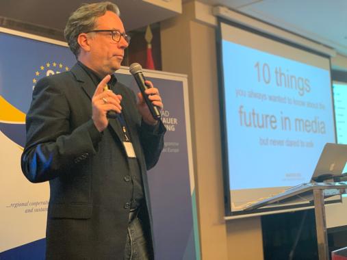 The discussions on public service media continued on the second day. The basis for the debates was the presentation of the new KAS book “A Pil-lar of Democracy on Shaky Ground – Public Service Media in South East Europe” which for the first time gives a complete overview of public ser-vice media in the region. Next to individual country chapters in the book there is a recent representative opinion poll which was presented by Darija Fabijanić from the KAS Media Programme South East Europe. For more than two-thirds of media users public service media are important for a democratic society. In the same time, almost 65 percent see the public broadcasters under political influence. Jean Philip de Tender, Media Director at the European Broadcasting Un-ion (EBU), emphasised in his keynote speech that trust of the audience is important to be gained and be maintained.