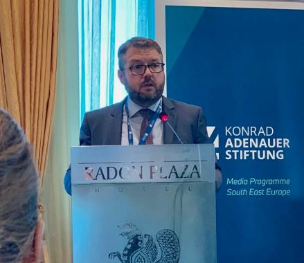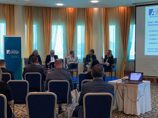 In the second panel Dr Kristijan Sedan (Institute of Communication Sciences, Catholic University of Croatia, Zagreb), Aleksandar Klarić (Secretary General of the Parliament of Montenegro, Podgorica), Daniela Munteanu (Strategic Analyst, Euro-Atlantic Resilience Centre, Bucharest) and Sokol Shameti (Media Advisor of the Ombudsman's Office in Albania, Tirana) discussed successful practices and experiences of public sector communication in uncertain times. The panel was moderated by Christian Spahr (Secretary General of the Assembly of European Regions, Brussels). Among other things, they agreed that the Russian war in Ukraine had brought new momentum to the EU integration process and that certain countries were helping each other.