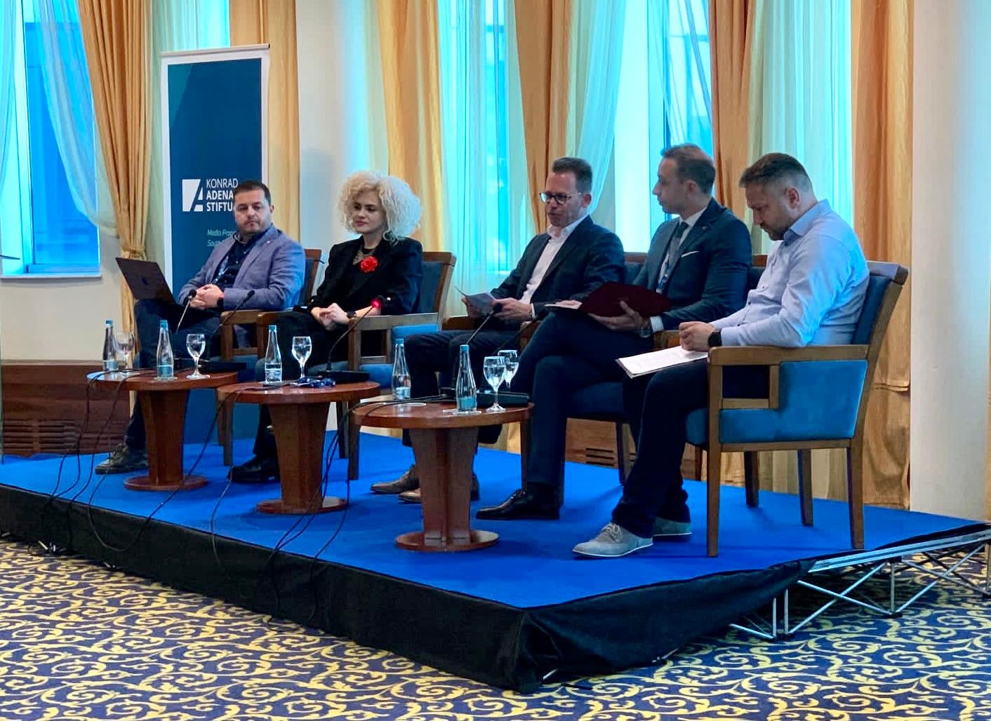 Hendrik Sittig, Head of the KAS Media Programme South East Europe, and Ognian Zlatev, SEECOM Chairman and Head of the European Commission Representation in Croatia, opened the conference. They spoke about the Russian war of aggression in Ukraine and described it as aggression against democracy. Disinformation in the different countries of Europe was also a topic. In such times, they said, it is especially important for governments and the media to be as transparent as possible in order to reduce the insecurity of the population. On the part of the host country Bosnia and Herzegovina, Duška Jurišić welcomed the participants in her position as Deputy Minister for Human Rights and Refugees of Bosnia and Herzegovina. The last few years had been years of crisis and the country has faced a lot of challenges. But she was convinced that Europe must work together to overcome the past years and become stronger. Majlinda Bregu, Secretary General of the Regional Cooperation Council for South Eastern Europe, based in Sarajevo, quoted a survey that about one in two Bosnians perceived disinformation as a threat and 63 per cent did not trust the media. But, she asked, how can one create an environment of trust if the population does not believe in the media. Mirjana Ivanovic (SEECOM Secretary General) moderated the entire conference.