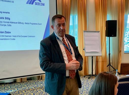 Together with the long-standing KAS partner SEECOM, the South East Europe Public Sector Communication Association, the KAS Media Programme for South East Europe organized the conference. Guests of KAS-SEECOM 2023 were again government spokespersons, communication experts and journalists from the entire South East European region, who discussed the current opportunities and challenges of political communication together with experts from Germany and Brussels.