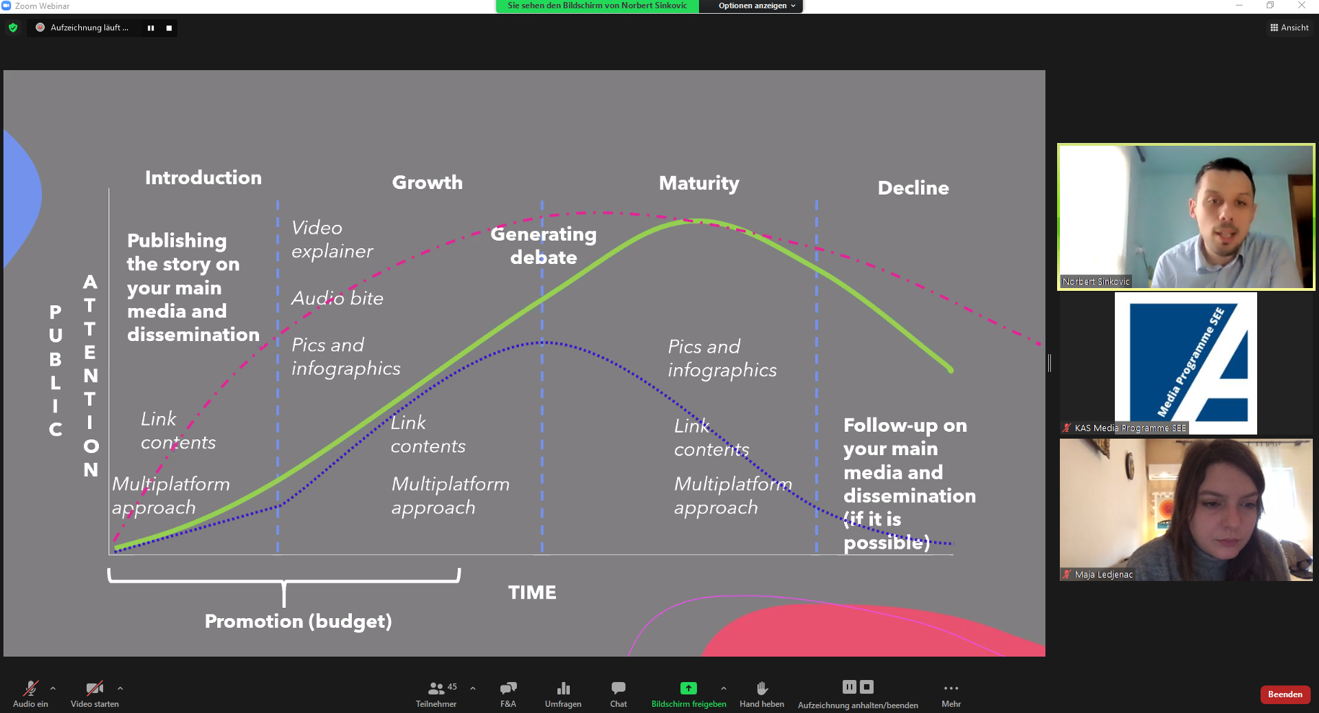 However, in order to use these tools appropriately, one also has to know the stages of the life cycle of every journalistic story. You need to know when, how and where to place the content most strategically and which forms of presentation and narrative techniques appeal to users the most in the social media platforms such as TikTok. According to the trainers a well-planned combination of current, exciting content, cross-media and multimedia placement, precise timing and available resources are of great importance.