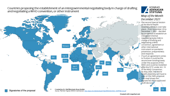 This agreement at the special session from the 29th November to the 1st of December was preceded by highly contentious and political debates, with some skeptics pushing to reform the existing International Health Regulations and others fearing unproportional targeting of the low and middle-income countries. Proponents see a potential agreement as an important way to address shortcomings in the handling of this pandemic and a means to create more equity, especially regarding the allocation of medical countermeasures such as vaccines.
