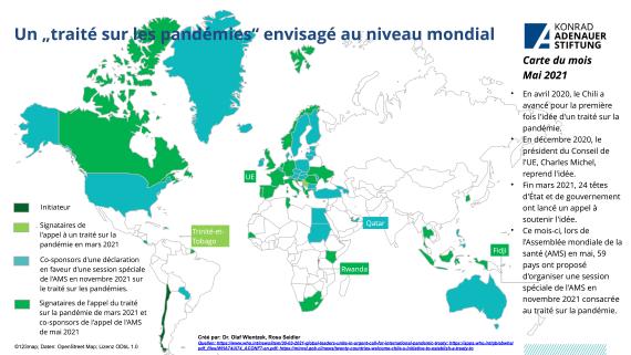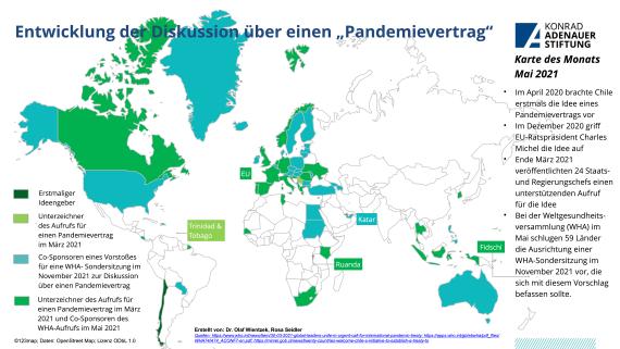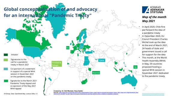 This month, at the World Health Assembly (WHA) in May, 59 countries proposed hosting a special WHA session in November 2021 dedicated to the pandemic treaty. Already back in April 2020, Chile first put forward the idea of a pandemic treaty, which was taken up by EU Council President Charles Michel in December 2020. At the end of March 2021, 24 heads of state and government issued a call for support for the idea.