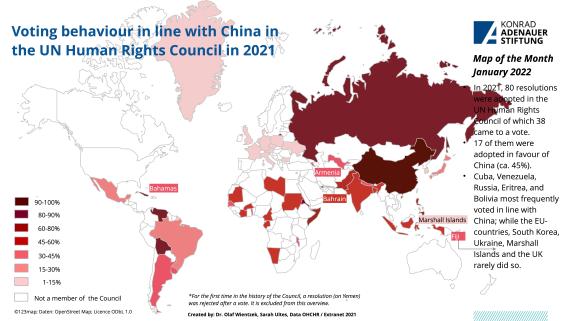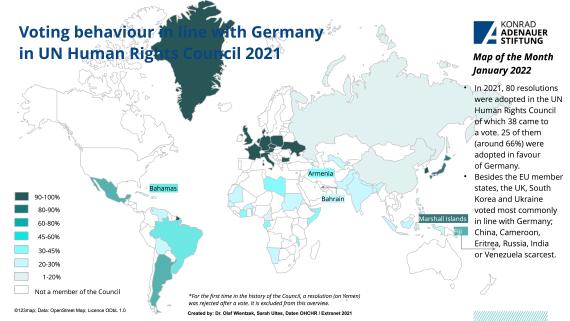 The Map of the Month January illustrates the joint voting behaviour of the Members of the UN Human Rights Council (HRC) with Germany and China in 2021.