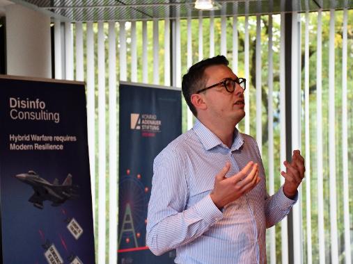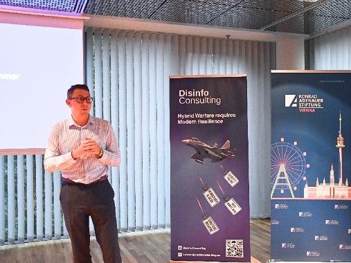 Markus Schwinghammer (DisInfo Consulting, Vienna) shared his expertise on information manipulation and hybrid threats.
