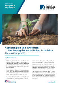 Mit der Enzyklika Laudato si´ hat die Katholische Kirche das Thema Nachhaltigkeit in den Fokus gerückt. Die Enzyklika gilt als weltweit wichtigster Referenztext der Nachhaltigkeitsdebatte. In ihm spielen die ethische Dimension und die Frage nach dem guten Leben eine zentrale Rolle. In seiner Analyse macht der Autor Prof. Dr. Matthias Zimmer deutlich, dass die Grundbotschaft der Enzyklika Laudato si´, diese Wirtschaft töte, keine Absage an Märkte allgemein und Formen kapitalistisch orientierten Wirtschaftens im Besonderen sei, sondern ein Hinweis auf Entartungsformen, die der Idee des Gemeinwohls konträr gegenüberstehen Demnach gehe zusätzliches Wachstum nicht notwendig mit mehr Wohlstand und mehr Lebensqualität einher.