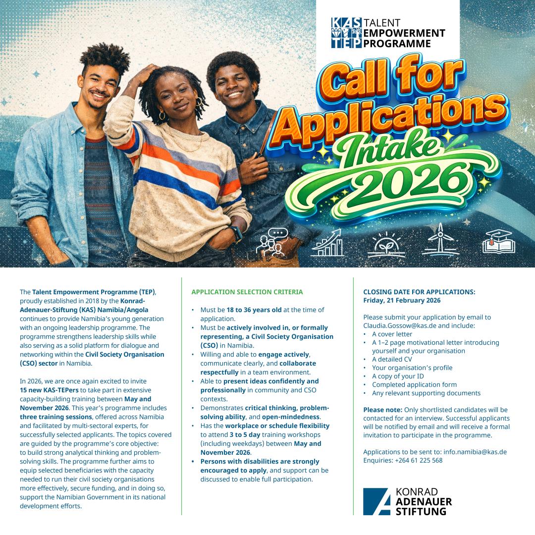 KAS Talent Empowerment Programme – Intake 2026! - Foundation Office Namibia and Angola