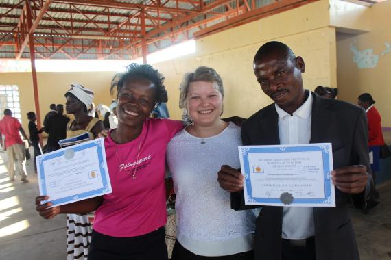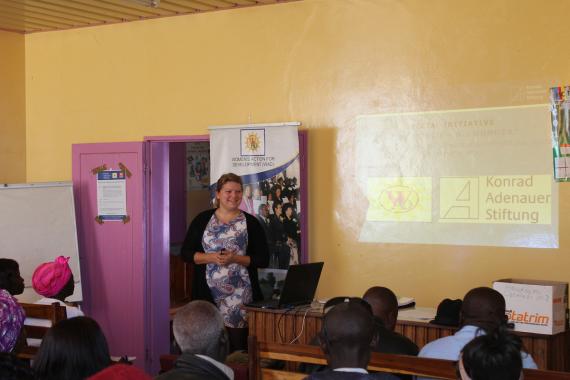 Zum ersten Mal wurden zu diesem Anlass auch Ausgaben der im Auftrag der Konrad-Adenauer Stiftung auf Oshivambo übersetzten namibischen Verfassung an die WorkshopteilnehmerInnen verteilt. Hierüber freuten sich alle Workshop Teilnehmer und Teilnehmerinnen sehr. Der Workshop begann mit einer Kurzvorstellung der beiden durchführenden Organisationen: der Konrad-Adenauer-Stiftung und ihrem Kooperationspartner „Women’s Action for Development“ (WAD). Anschließend begrüßte auch der Vorsitzende des Omusati Regional Council, Hon. Modestus Amutse, die TeilnehmerInnen und betonte die Wichtigkeit solcher Workshops. Im weiteren Verlauf des ersten Workshoptages ging es besonders darum, die Erwartungen der TeilnehmerInnen an den Workshop zu definieren und erstes Wissen über die Aufgaben und Pflichten der traditionellen Autoritäten zu vermitteln. Hierbei stand mit Blick auf das Thema des Workshops besonders die Rolle der traditionellen Autoritäten in Bezug auf Landrechtsfragen im Vordergrund. Am zweiten Tag des Workshops wurde besonders auf den Wunsch der WorkshopteilnehmerInnen eingegangen, mehr über die namibische Verfassung, die Bedeutung von Menschenrechten und Fragen der Gleichberechtigung zwischen Mann und Frau zu lernen. Hervorzuheben ist, dass die Teilnehmer und Teilnehmerinnen an diesem Workshop Tag außerdem den Chief der traditionellen Autorität der Uukolonkadhi als Gast des Workshops begrüßen konnten. Auf Fragen zur Gleichberechtigung zwischen Mann und Frau und die Bedeutung von Menschenrechten folgte am dritten Workshoptag eine lebhafte Diskussion über das Spannungsverhältnis von Korruption und geltendem, allgemeingültigen Recht in Namibia, bevor mit dem Erbrecht das nächste Themengebiet eingeleitet wurde. In diesem Zusammenhang lernten die Teilnehmer und Teilnehmerinnen unter anderem, was die Voraussetzungen zur Erstellung eines gültigen Testaments sind. Weitergehend war auch die Bedeutung eines Testaments für den Umgang mit Eigentum oder Landrechten nach dem Tod Teil des Lerninhalts. Der dritte Workshop Tag endete mit der Einführung in die Grundsätze des Communal Land Reform Acts. Am letzten Workshop Tag wurden schließlich die zwei Themengebiete des Erbrechts und der Aufgaben und Pflichten der traditionellen Autoritäten zusammengeführt, indem an diesem Tag die Zuweisung und Neuzuweisung von Landrechten im Todesfall und die Rolle der traditionellen Autoritäten im Fokus standen. Teil der in diesem Zusammenhang entstehenden Diskussion war auch die Frage, wie im Todesfall eines Landrechtsbesitzers mit Landrechtsstreitigkeiten zwischen verschiedenen Ehefrauen und deren Kindern umgegangen werden sollte. Die Diskussionen fanden hierbei stets unter Berücksichtigung der Prinzipien des Communal Land Reform Acts statt. Zum Abschluss des letzten Workshoptages wurde gegenüber den TeilnehmerInnen die Notwendigkeit betont, das neu erlernte Wissen in den ihren Dörfern zu verbreiten, um so bestmöglich dazu beizutragen, die Landnutzungsrechte von Frauen zu sichern. Im Anschluss daran nahmen die Teilnehmer und Teilnehmerinnen stolz ihre Teilnahmezertifikate entgegen. Das durchweg positive Feedback der WorkshopteilnehmerInnen sowie die konstant hohe Teilnehmerzahl verdeutlichen den Erfolg des Workshops in Onesi.
