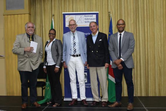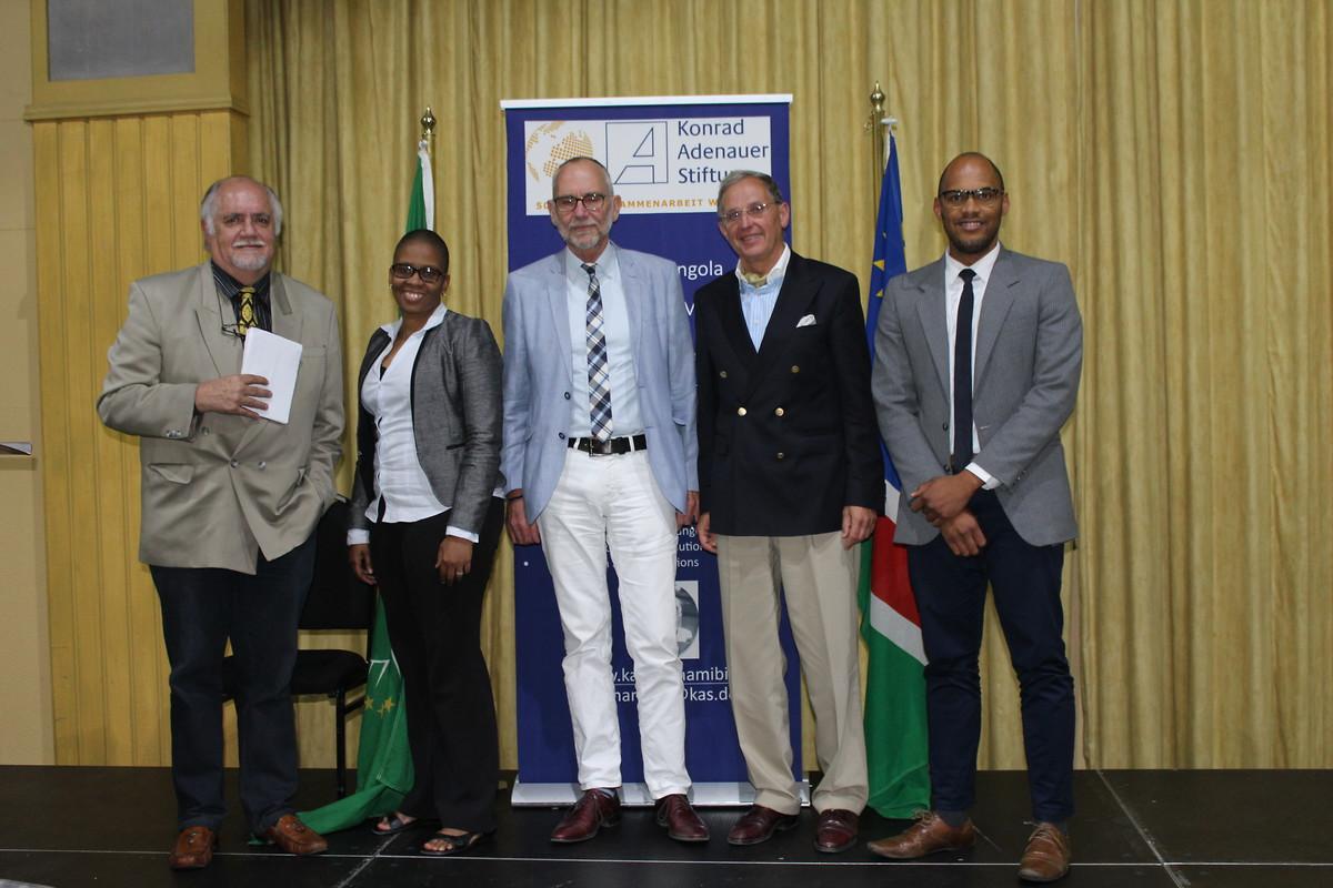 KAS invited three different experts as panelists: Prof. Dr. Matthias Herdegen, Chair for Public, European and International Law from the University of Bonn, Suta Kavari, Vice Chairperson of the Economic Assiciation of Namibia and Yvonne Dausab, Chairperson of the Law Reform and Development Commission. Prof. Nico Horn, faculty of law, UNAM moderated the event.