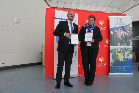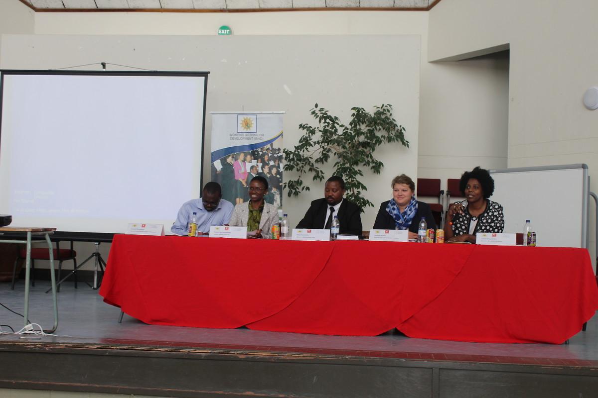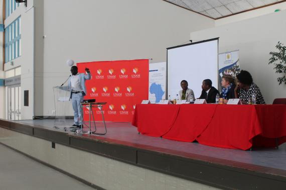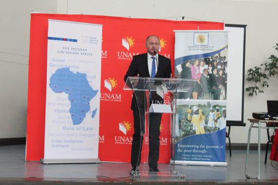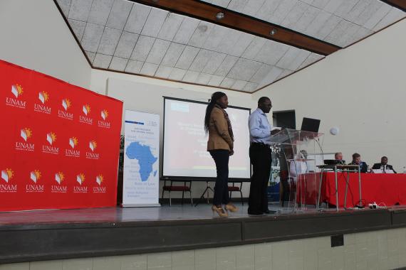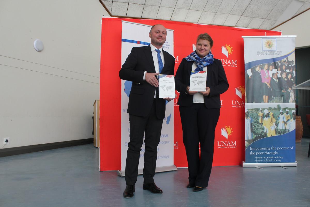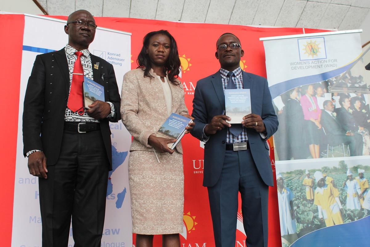 Vor diesem Hintergrund präsentierte die Konrad Adenauer Stiftung in enger Zusammenarbeit mit der Universität von Namibia (UNAM) und dem Implementierungspartner Women's Action for Development (WAD) am 03. August 2017 in der Hifikepunye Pohamba Campus Main Hall in Ongwediva die Ergebnisse der Grundlagenstudie zum Status Quo von Landnutzung, Besitz und Rechten von Frauen in den Regionen Ohangwena, Omusati, Oshana und Oshikoto. Nach den Eröffnungsreden der Bürgermeisterin von Ongwediva, Frau Angelina Angula, und dem Leiter des KAS Auslandsbüros, Thomas Keller, folgte die Präsentation der Ergebnisse durch Frau Ndeshi Namupala (UNAM) und Herrn Martin Shapi (UNAM). Weiterer Programmpunkt war die im Auftrag der Konrad Adenauer Stiftung in Oshivambo übersetzte Ausgabe der namibischen Verfassung, die an die Veranstaltungsteilnehmer verteilt wurde. Den Abschluss der Veranstaltung bildete eine lebhafte, zweistündige Diskussion zwischen den Teilnehmern und den Podiumsrednern, Frau Stefanie Braun (KAS), Frau Louise Shixwameni, Frau Romie Nghitevelekwa (UNAM) und Herrn Absai Kashululu (WAD). Das wichtigste Bestreben war es, Bewusstsein unter den Teilnehmern zu schaffen und die soziale und wirtschaftliche Diskriminierung anzusprechen, der Frauen unter den derzeitigen Gegebenheiten in Namibia ausgesetzt sind. Die Stärkung ihrer Rechtsansprüche und der gesicherte Zugang zu Land sind für Frauen besonders wichtig, weshalb sich dieses Thema als roter Faden durch die gesamte, gut besuchte Veranstaltung zog.