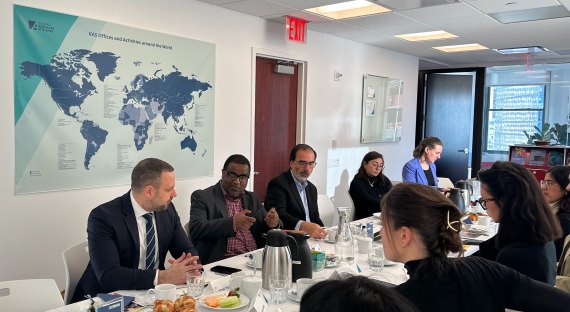 On 17 November 2025, the Konrad Adenauer Foundation (KAS) New York Office, in partnership with the Counter Extremism Project (CEP), hosted a lunch roundtable titled “External Non-State Actors as a Source of Instability in West Africa: Hezbollah and Wagner Group/Africa Corps.” The event gathered experts and representatives from the United Nations, Member States, academia, and civil society to examine the roles of Hezbollah and the Africa Corps/Wagner Group in reshaping security and governance dynamics across the region.
