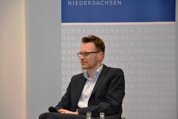 (v.l.n.r.) Tobias Wangermann (KAS), Prof. Dr. Fabian Schmieder, Marie-Teresa Weber, Dr. Bernd Althusmann (CDU), Weihbischof Heinz-Günter Bongartz, Christoph Bors (KAS)