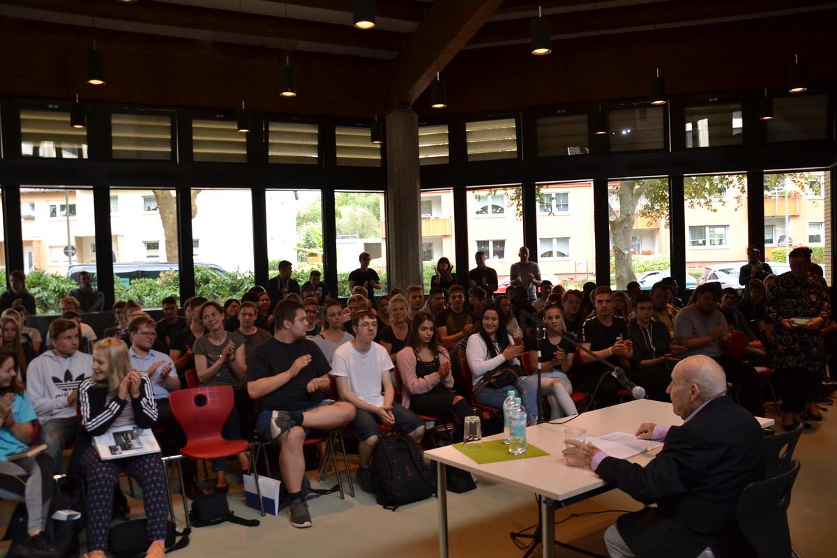 Gespannt hören die Schüler dem faszinierenden zweistündigen autobiografischen Vortrag mit großer Konzentration zu.