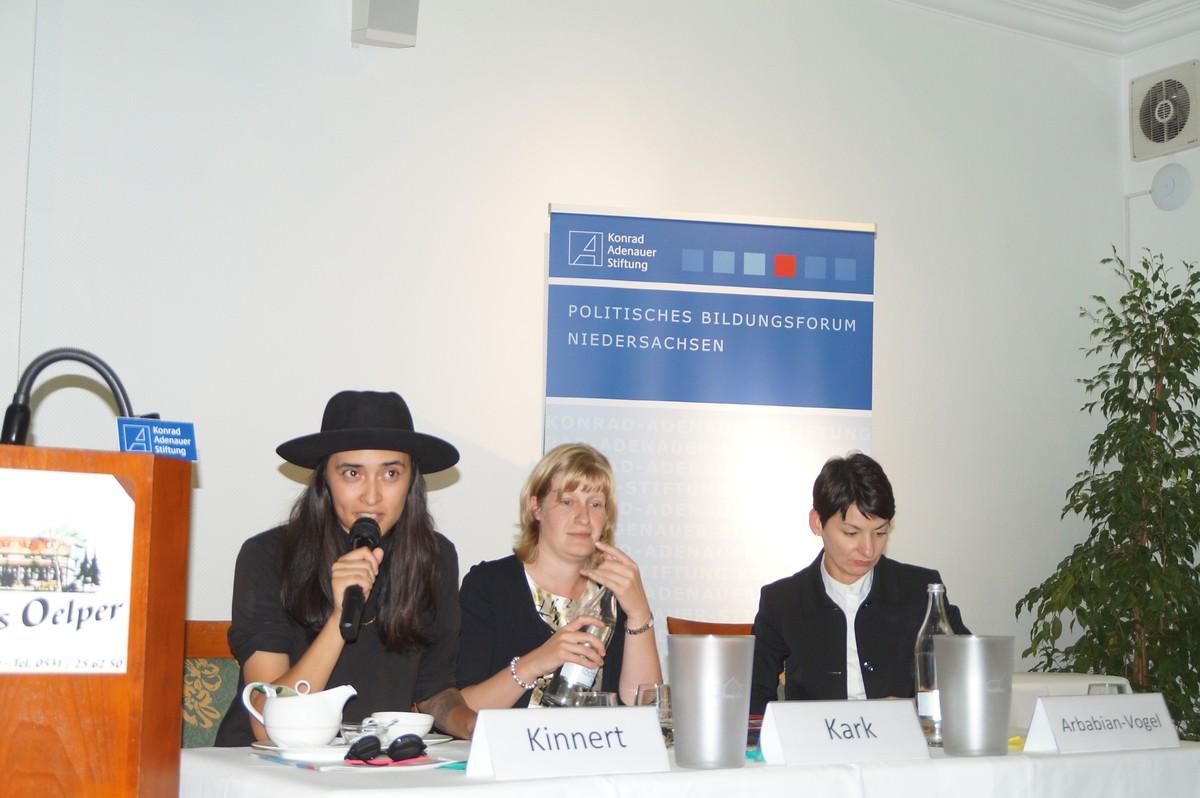 Der Veranstaltungstitel: „100 Jahre Frauenwahlrecht. Ziel erreicht!“ stößt bei Jasmin Arbabian-Vogel auf Widerspruch. Das Ausrufezeichen sei demnach durch ein Fragezeichen zu ersetzen. Sie vertritt die Auffassung, dass das Ziel der Gleichstellung bisher in vielen Bereichen nicht erreicht sei. Schuld daran wäre unter anderem das allgemein vorherrschende Frauenbild und die Identitätsbildung bei jungen Mädchen.