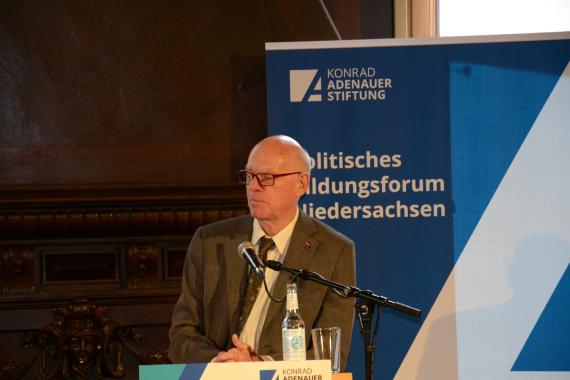 Mit Sorge wies Lammert darauf hin, dass weltweit immer weniger Demokratien funktionsfähig seien. Autoritäre Regime und Ideologien gewännen zunehmend an Einfluss. Am Beispiel Donald Trumps zeigte er, wie selbst in der ältesten Demokratie der Welt demokratische Prinzipien untergraben werden könnten – etwa durch Missachtung von Verfassungsregeln und demokratischer Gepflogenheiten.