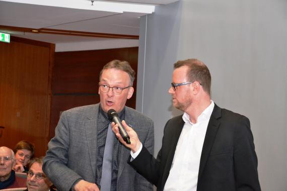 Auch das Publikum hatte die Gelegenheit, Fragen zu stellen.Leider konnten aus Zeitgründen nicht alle Fragen aus dem Publikum durch Moderator Martin Brüning (r.) angenommen werden.