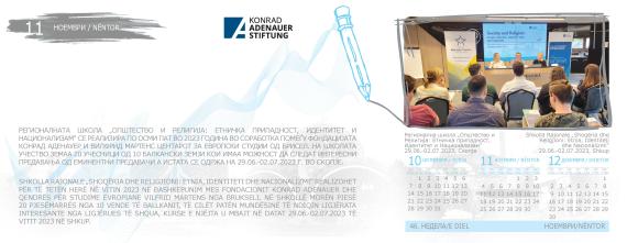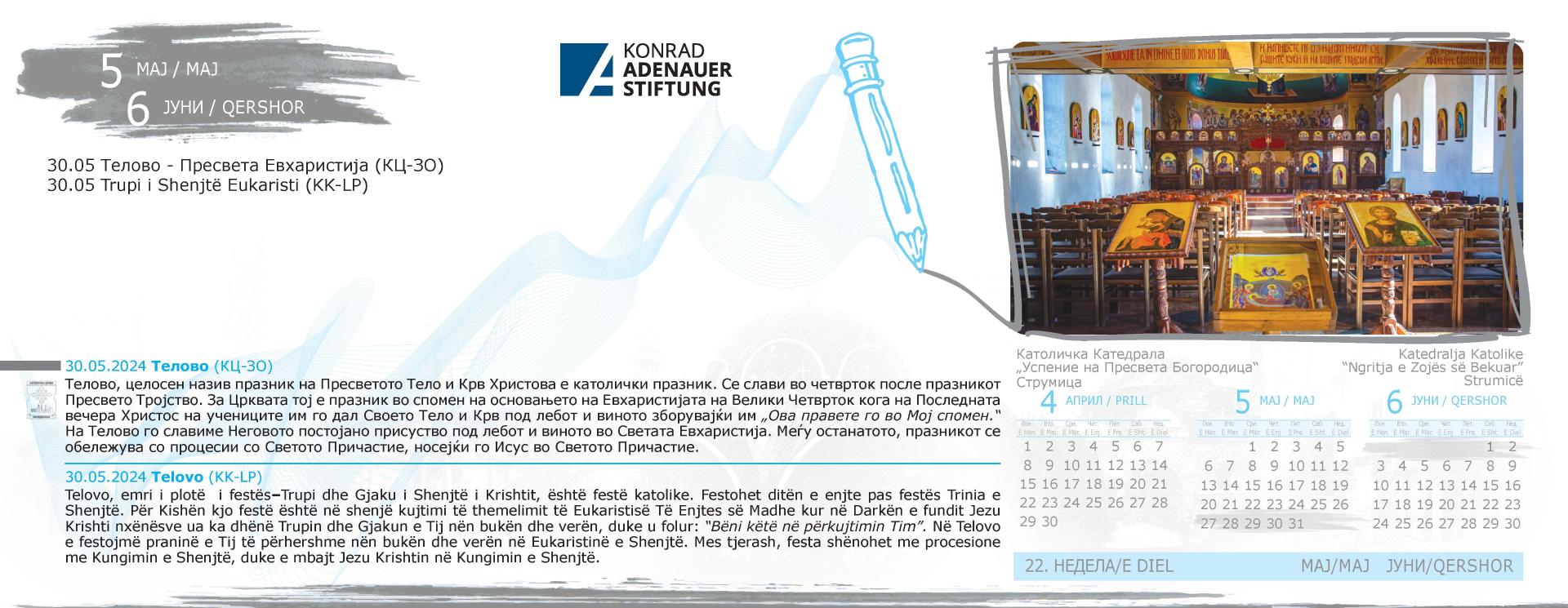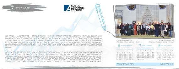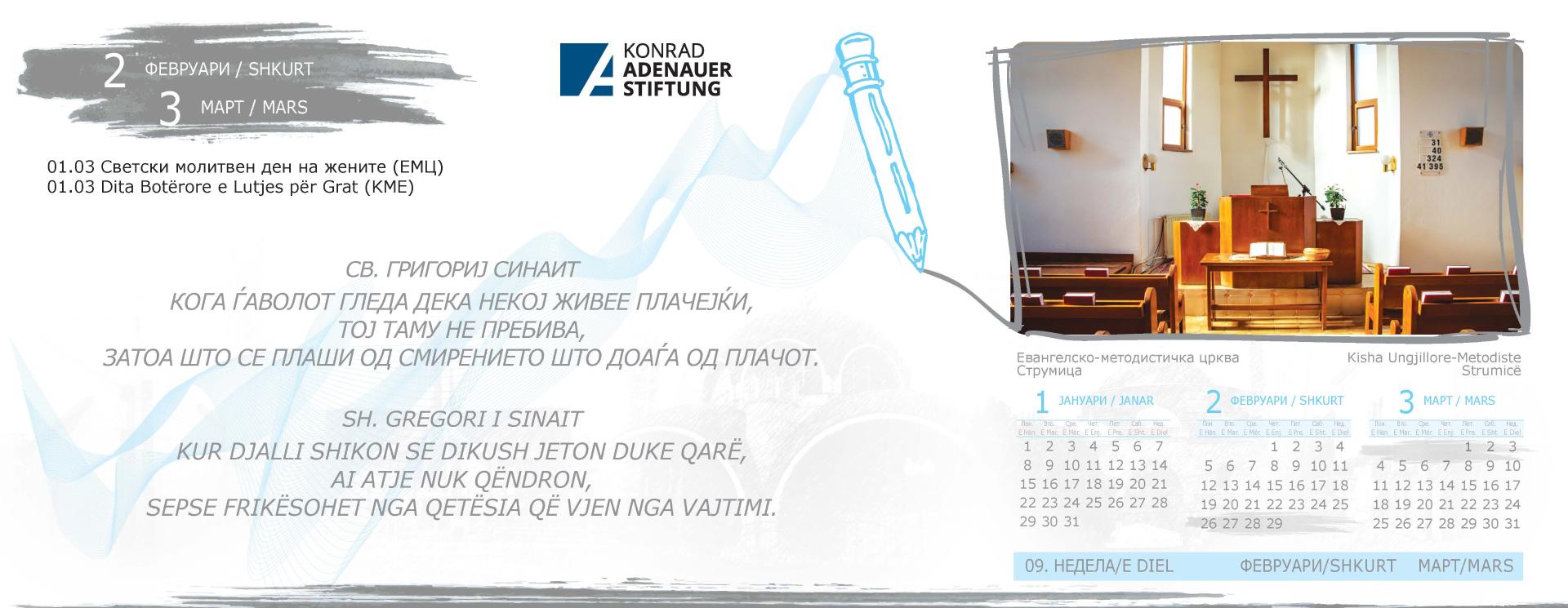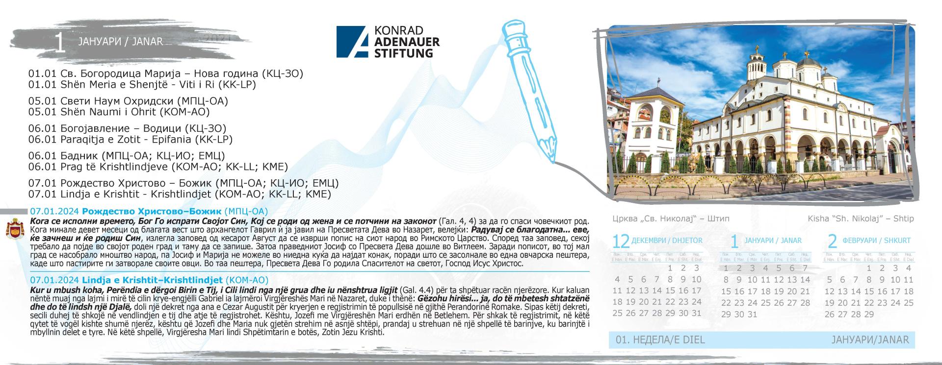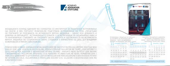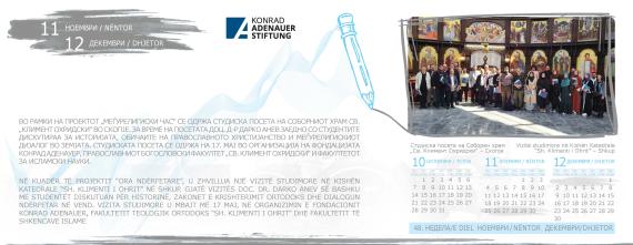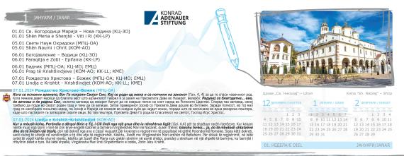 This year the calendar has a new design with photographs of religious objects from the Shtip, Radovish, Strumica and Kochani region and typical religious messages including explanations of the meaning, traditions and celebrations for certain religious holidays.