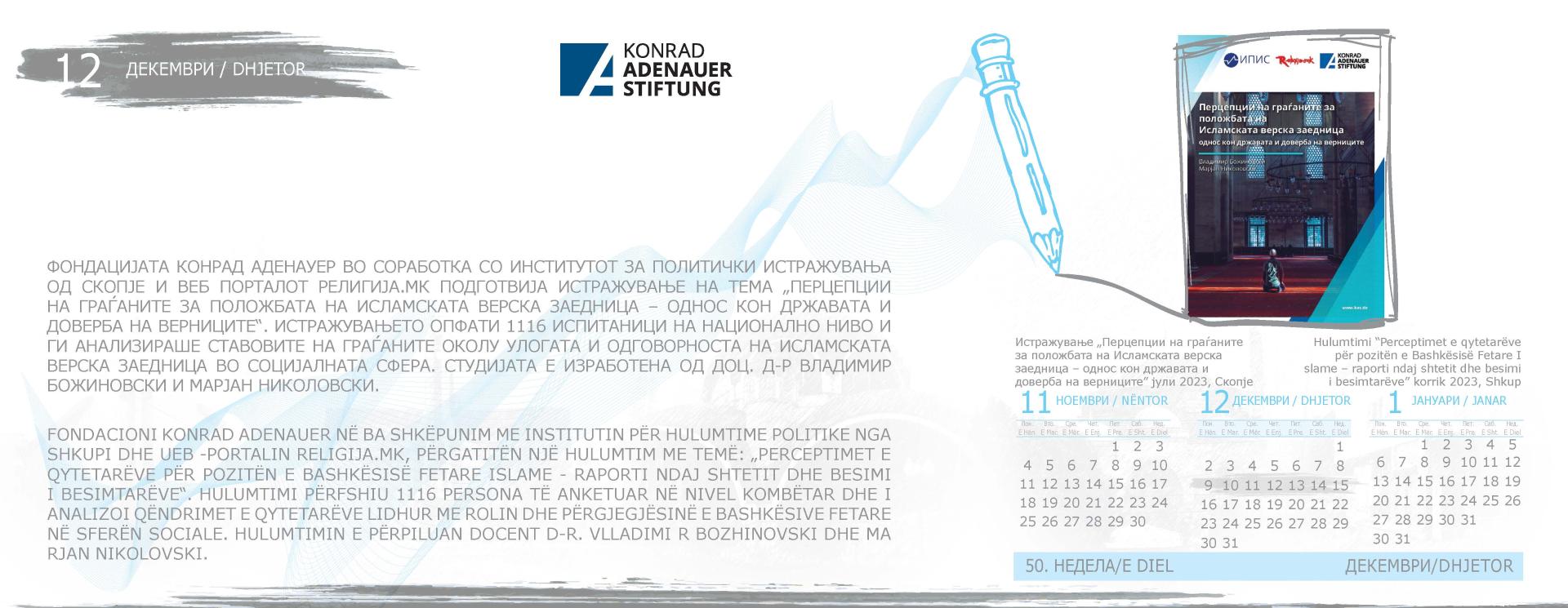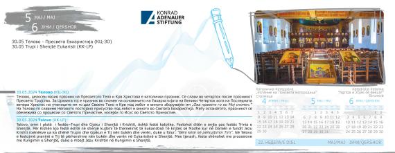 This calendar is issued traditionally by the Konrad Adenauer Foundation in joint cooperation with the five religious communities since year 2011.