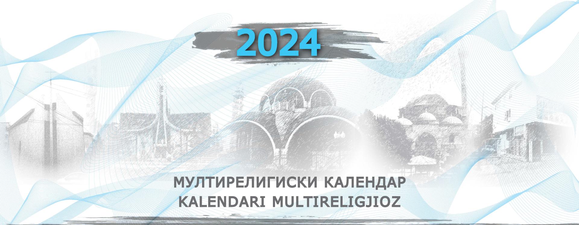 The calendar includes major religious holidays from each religious community: Macedonian Orthodox Church-OA, Islamic Religious Community, Catholic Church, United Methodist Church and Jewish Community.