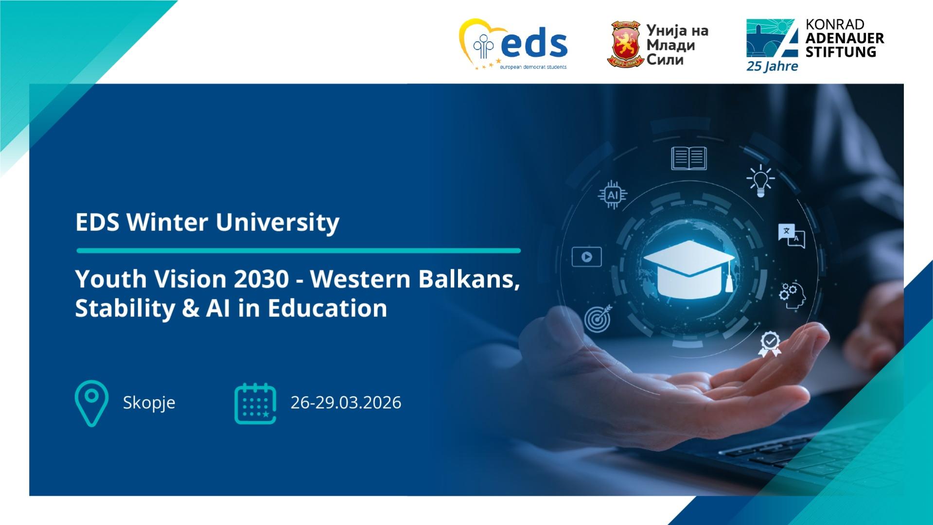 EDS as the official student organisation of the European People’s Party (EPP), represents a platform that brings together young leaders from across Europe and actively contributes to strengthening democratic values, political education, and European integration. In this spirit, the Winter University will bring together young political leaders, professionals and policymakers, enabling the exchange of ideas and building a shared vision for the development of the societies by 2030.