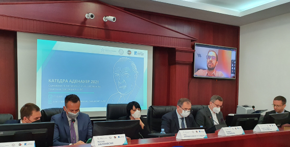The attendees were introduce to the topic by Davor Pasoski, on behalf of the KAS office in Skopje, and Katerina Jakimovska, on behalf of the Wilfried Martens Centre for European Studies.