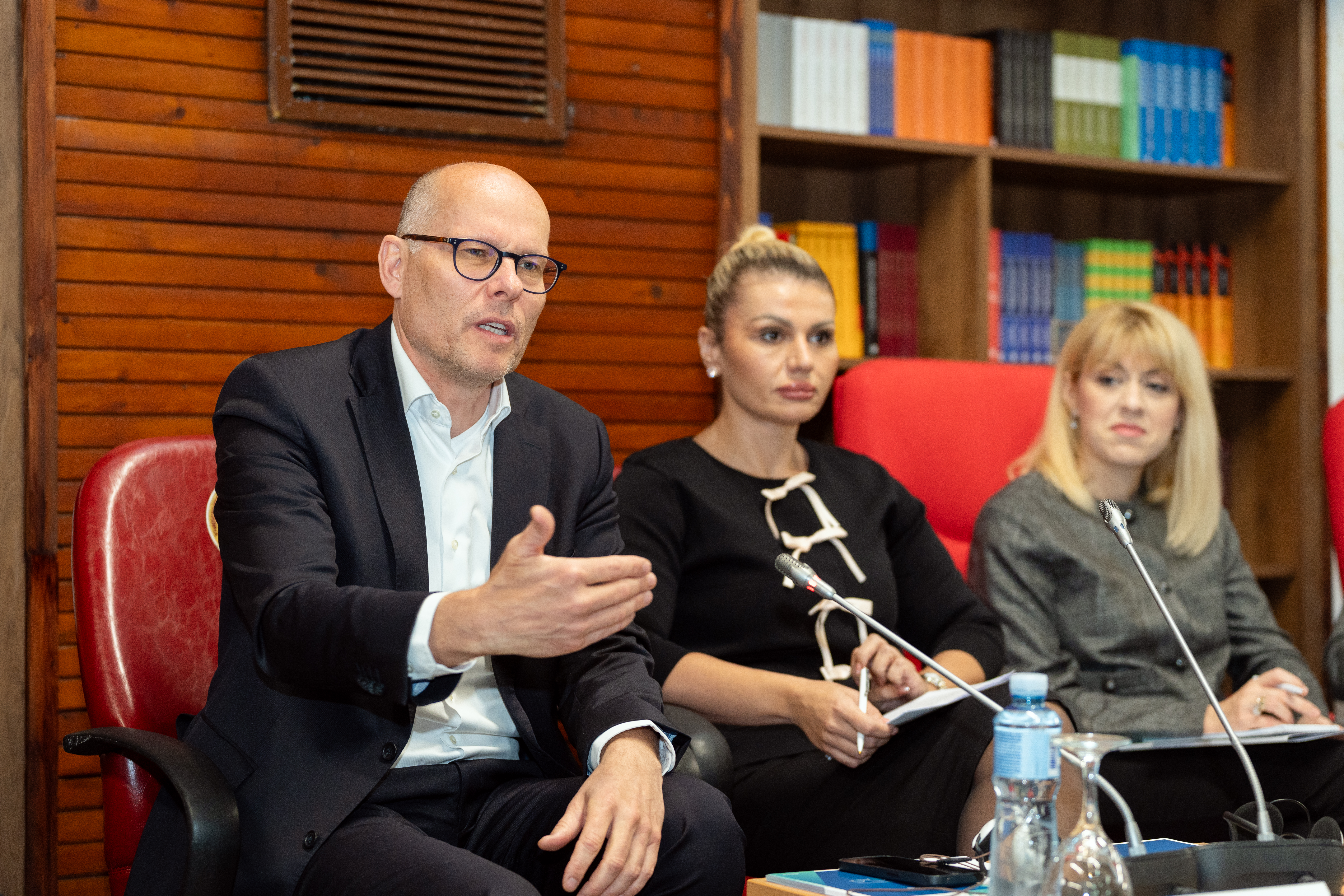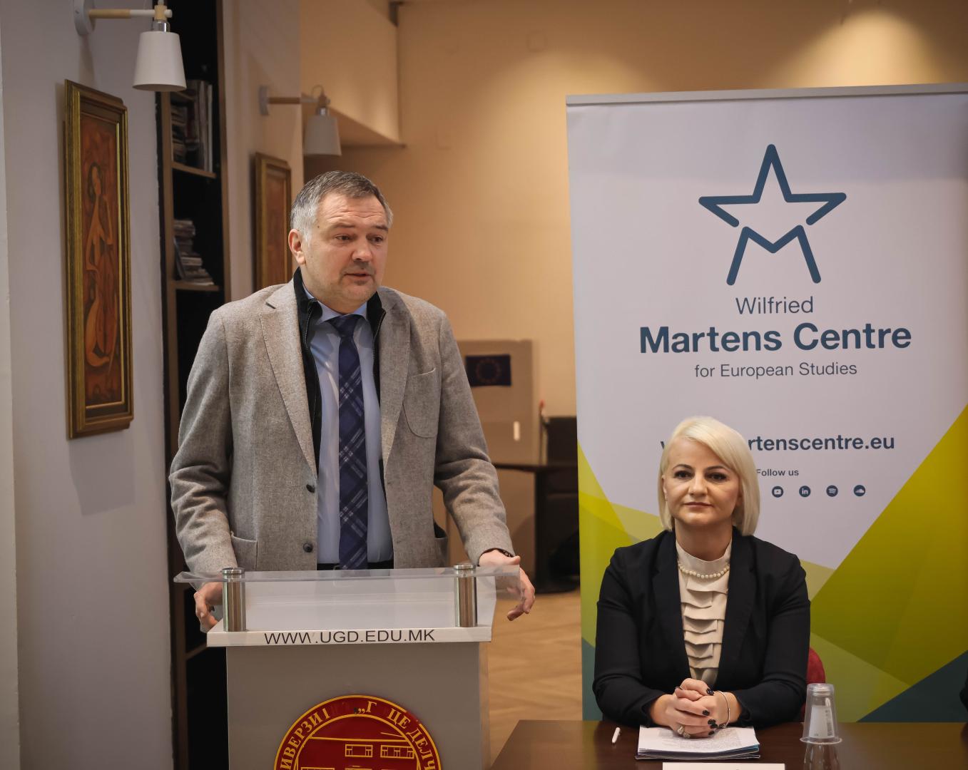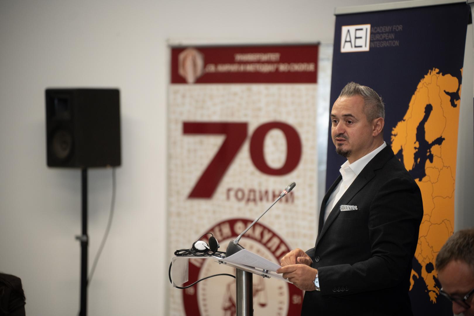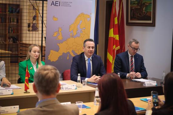 The first discussion entitled "De-risking Globalization and Enhancing EU Foreign Policy" was held at the Faculty of Law “Iustinianus Primus” in Skopje on 04 October 2024.