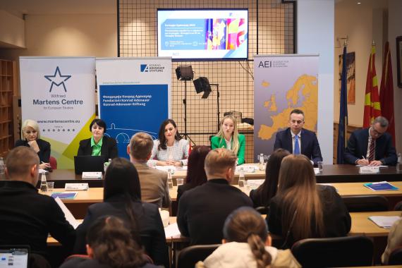 Overall, this year's Cathedra Adenauer provided a platform for extensive discussions and analyses of the key challenges and opportunities shaping the future of the European Union and the Western Balkans region. The discussions covered a broad range of issues, starting with addressing global risks and the need to strengthen European foreign policy, analyzing the enlargement process and its effects on the Western Balkans, and highlighting the importance of regional cooperation as a crucial factor for successful European integration. Participants shared their visions, experiences, and insights on the need to enhance regional cooperation, while emphasizing the role of the EU as a driving force for the democratic, economic, and institutional development of the Western Balkan countries.