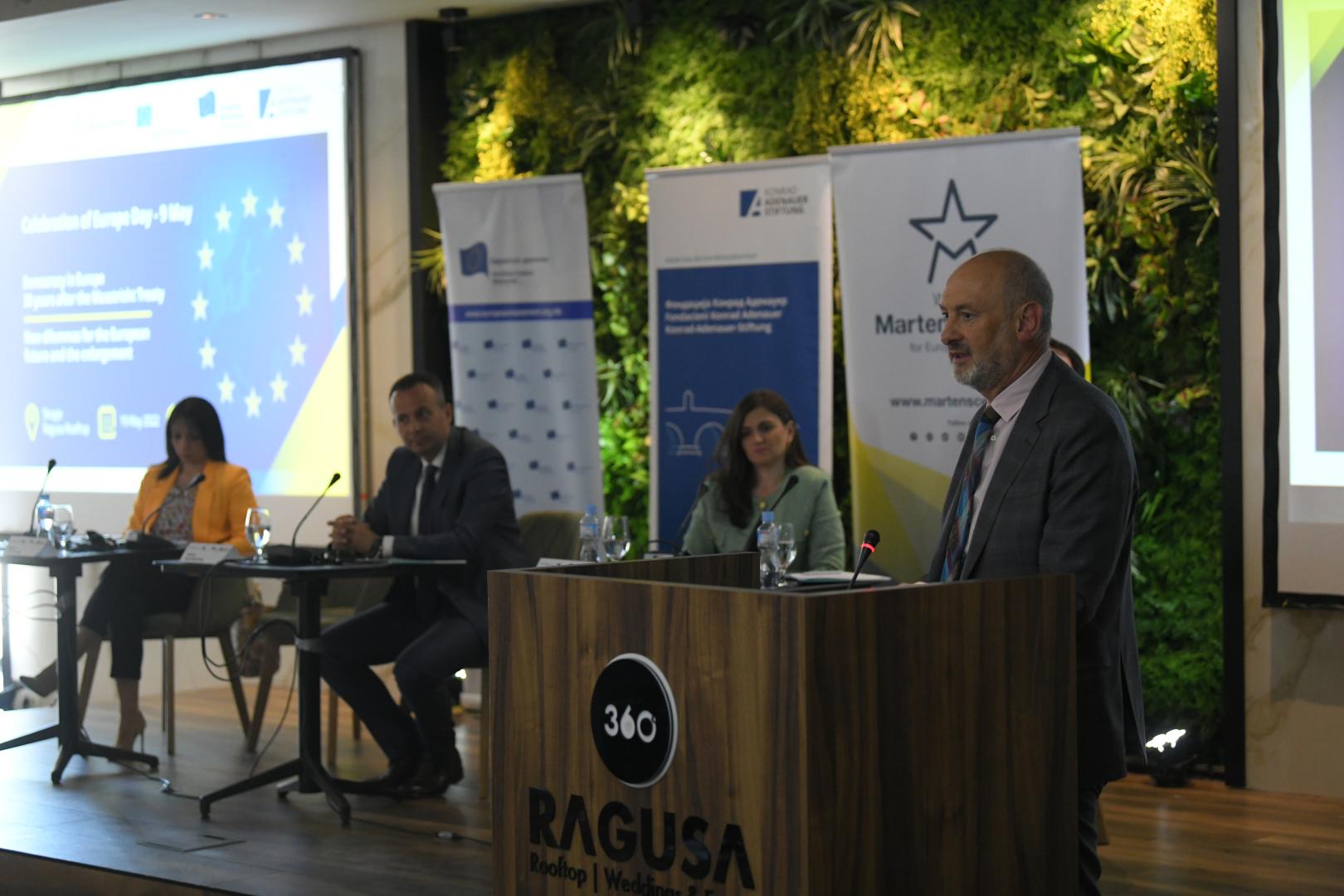The event began with a panel discussion on "Democracy in Europe - 30 years after the Maastricht Treaty: New dilemmas for the European future and the enlargement". The panel discussion was attended by representatives of the government, ministers, MPs, representatives of the diplomatic corps, including representatives of the NGO sector, as well as students.