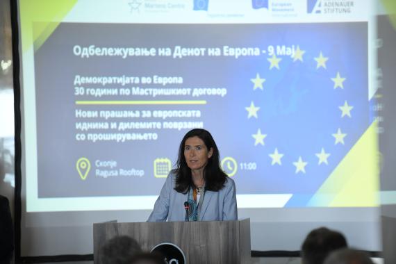 At the panel discussion, a keynote speech was given by David Geer, Head of Delegation of the European Union to the Republic of North Macedonia. In his address, he pointed out that the pandemic showed the capacity for assistance and solidarity of the EU, but also that the Maastricht Treaty had laid the foundations of this Europe in which we currently live. The Ambassador of the Federal Republic of Germany, Anke Holstein, also gave a keynote speech, emphasizing that the Maastricht Treaty provided most of the benefits that we consider normal and natural today.