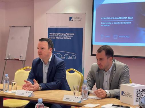 The President of VMRO-DPMNE, Hristijan Mickoski, in thanking the cooperation with KAS, emphasized the enormous importance of creating successful and quality policies, strategies and visioning, especially considering that the country is currently facing serious external shocks. Mickoski emphasized that it is extremely important to find ways to help the citizens. Mickoski emphasized that in the next period the party must put special focus on the energy crisis. Also he underlined "We learn from the positive examples from Germany, we are grateful for the cooperation with the Foundation, and this weekend we will continue to discuss the perspectives and vision for the future,"