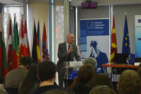 During the press-conference introductory speeches were delivered by the Head of the KAS office in Macedonia, Johannes D. Rey and the President of IDSCS Marko Troshanovski, after which the researches were presented by the authors Prof. Ivan Damjanovski and Zoran Nechev. The end part of the event was a discussion with the interested participants.