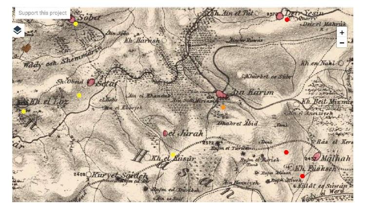 The project has used open-source mapping which has made available Pre-British Mandate and Mandate mapping of Palestine, specifically detailed early 1940’s maps, produced at the same time as the Nakbah. These colonial maps are juxtaposed alongside satellite imagery, which have then been overlaid into current day satellite imagery and imported into Google as proposed walking routes. The objective of this work is to find whether sites still exist inside the West Bank and whether they are in Areas A, B or C and to what extent their cultural significance remains, also to examine their accessibility and current existential threats by Israeli military ordinances, settler vandalism, archaeological expropriation and / or Israeli parks and tourism.