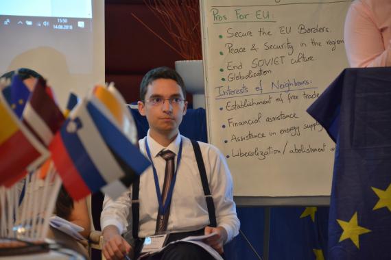 During the simulation game "Shaping Neighbourhood" with trainers from the German CIVIC Institute for international education, participants took on roles of members of the European Parliament as well as representatives in the Council of the European Union and the European Commission to play through a scenario of negotiations with "candidate countries" in the framework of the European Neighbourhood Policy in four dimensions: peace and security, shared values, level of economic integration, and participation in cohesion and developmental policy.